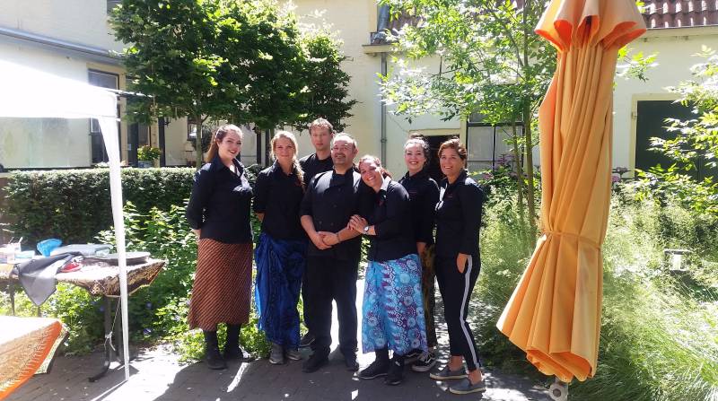 Een gezellige, exotische sfeer met muziek en decor in Indonesische stijl.
